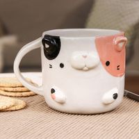 Whimsical Animal-Themed Handcrafted Calico Cat Mug 'Calico Morning' Item ID: 2671796844