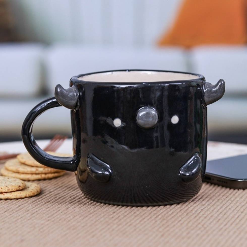 Whimsical Handcrafted Glossy-Finished Ceramic Buffalo Mug 'Buffalo Morning' Item ID: 2671796646