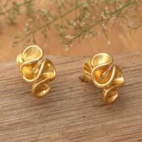 Whimsical High-Polished 18k Gold-Plated Button Earrings 'Immortal Brushstrokes' Item ID: 2676661429