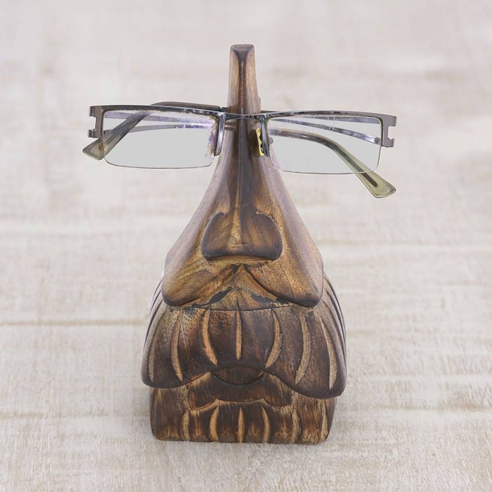Whimsical Mustached Face Mango Wood Eyeglasses Holder 'Mustachio' Item ID: 2671818043