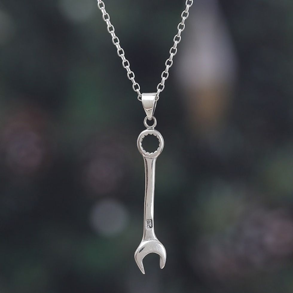 Whimsical Sterling Silver Necklace with Wrench Pendant 'Whimsical Work' Item ID: 2671625650
