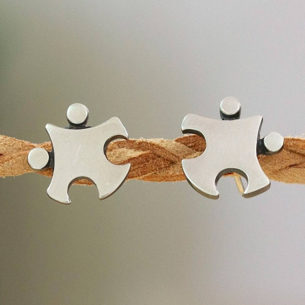 Whimsical Sterling Silver Puzzle Piece Button Earrings 'Pieces of Finesse' Item ID: 2671798568