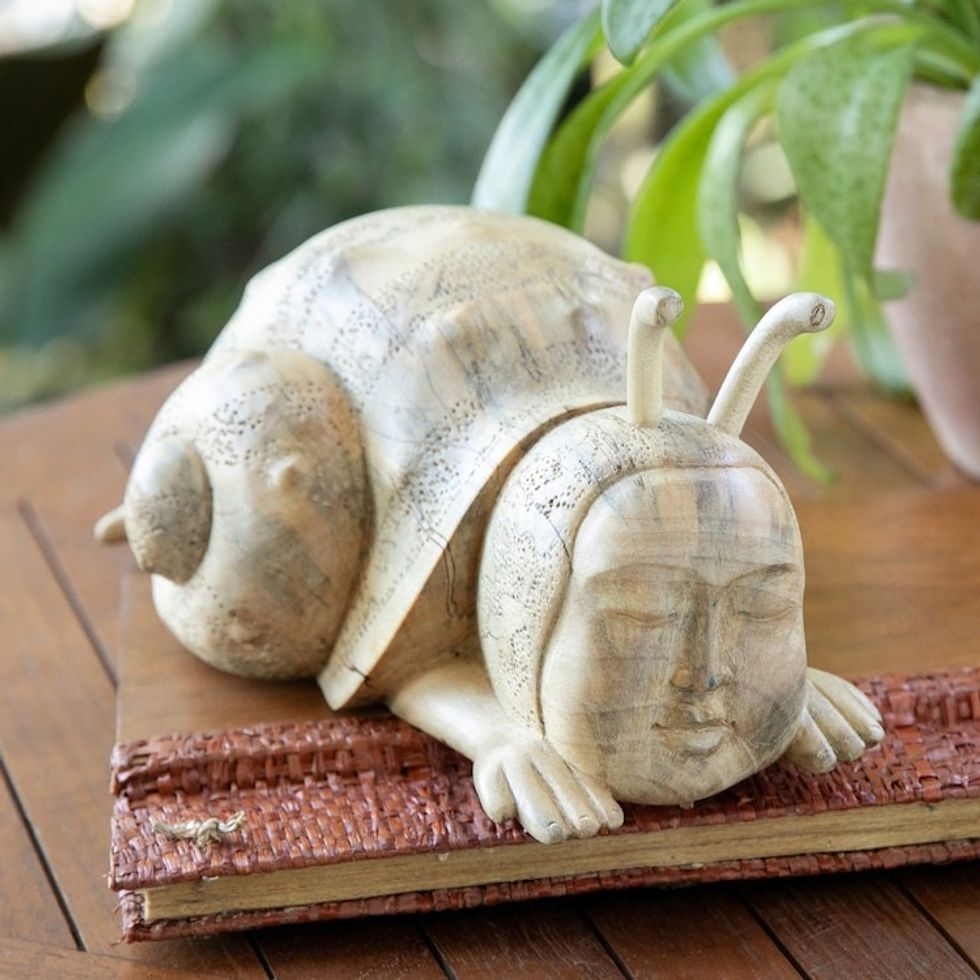 Whimsical Wood Sculpture of a Snail Man Hand-Carved in Bali 'Relaxed Snail Man' Item ID: 2671765758