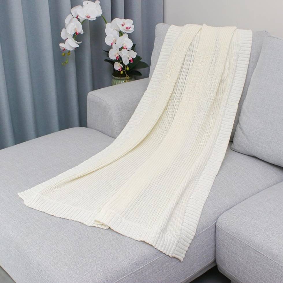 White All-Cotton Shaker Knit Throw Blanket 'White Comfort' Item ID: 2669897462