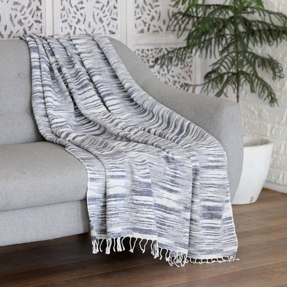 White and Blue Cotton Throw Blanket Hand-Woven in India 'Blue Heaven' Item ID: 2669923801