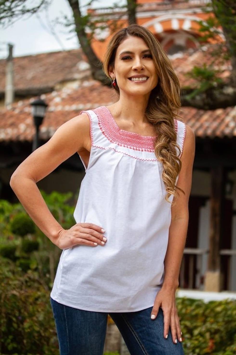 White and Flame Embroidered Cotton Blouse from Mexico 'Flame Delight' Item ID: 2671808394