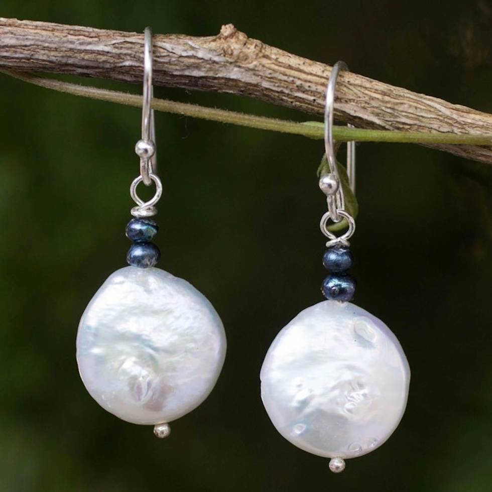 White and Gray Pearl Handcrafted Earrings 'Lunar Horizon' Item ID: 2669929362