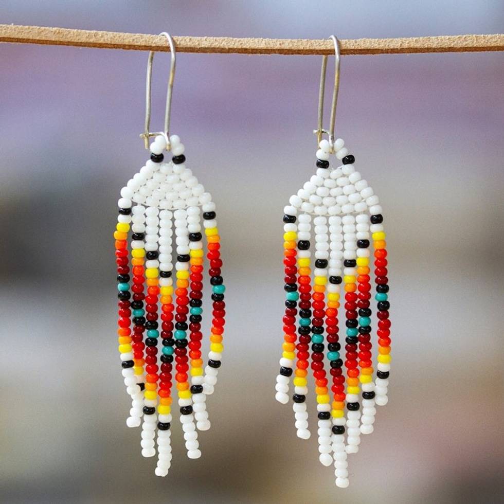 White and Orange Glass Beaded Dangle Earrings with Hooks 'Summer Sunrise Breeze' Item ID: 2671807865