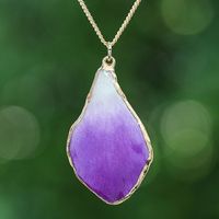 White and Purple Orchid 22k Gold-Accented Pendant Necklace 'Magical Petal' Item ID: 2671646450