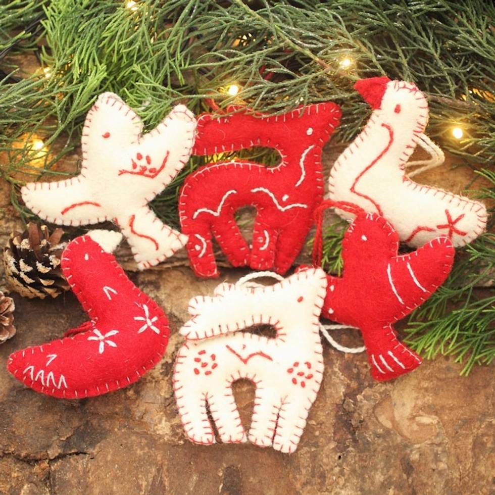 White and Red Animal Themed Felt Ornaments Set of 6 'Christmas Wishes' Item ID: 2669925216