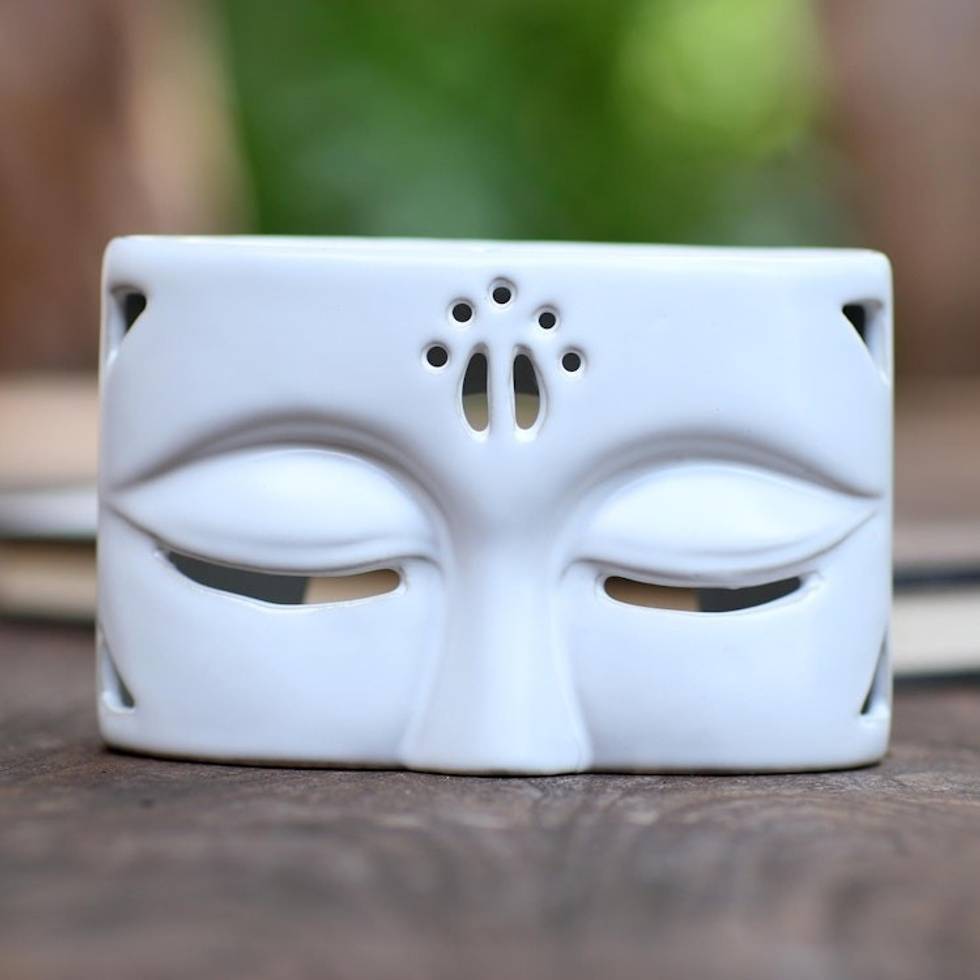 White Ceramic Buddha-Themed Oil Warmer 'Warming Buddha in White' Item ID: 2671745334