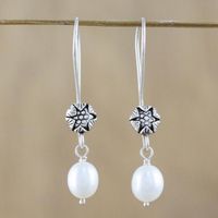 White Cultured Pearl Flower Dangle Earrings 'Emerging Buds' Item ID: 2671800673