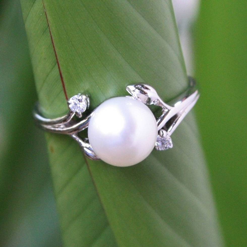 White Gold Plated Cultured Pearl Ring 'Budding Beauty' Item ID: 2669927240