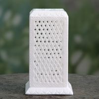 White Marble Tealight Holder Carved by Hand in India 'Mughal Pillar of Light' Item ID: 2669925198