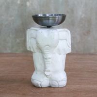 Whitewashed Wood Elephant Tealight Candle Holder 'Elegant Elephant' Item ID: 2671800981