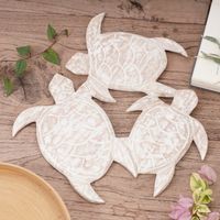 Whitewashed Wood Sea Turtle Relief Panel from Bali 'Three Sea Turtles' Item ID: 2671737035
