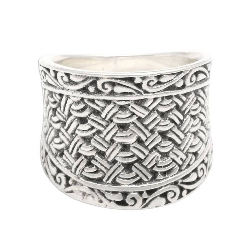 Wide Sterling Silver Woven-Look Band Ring 'Java Weave' Item ID: 2676667321