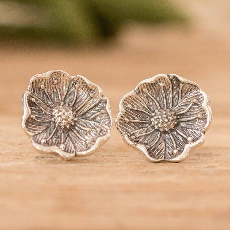 Wildflower Sterling Silver Button Earrings 'Wayside Blossom' Item ID: 2671626584