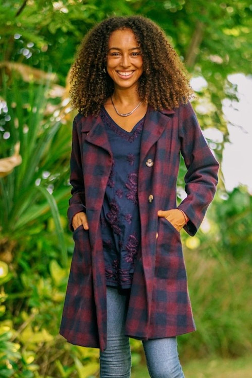 Wine and Navy Check Wool Blend Car Coat 'Jaipur Classic' Item ID: 2671818099