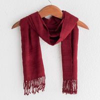 Wine Red Hand Woven Rayon Scarf with Fringe 'Color and Texture in Wine' Item ID: 2671776810