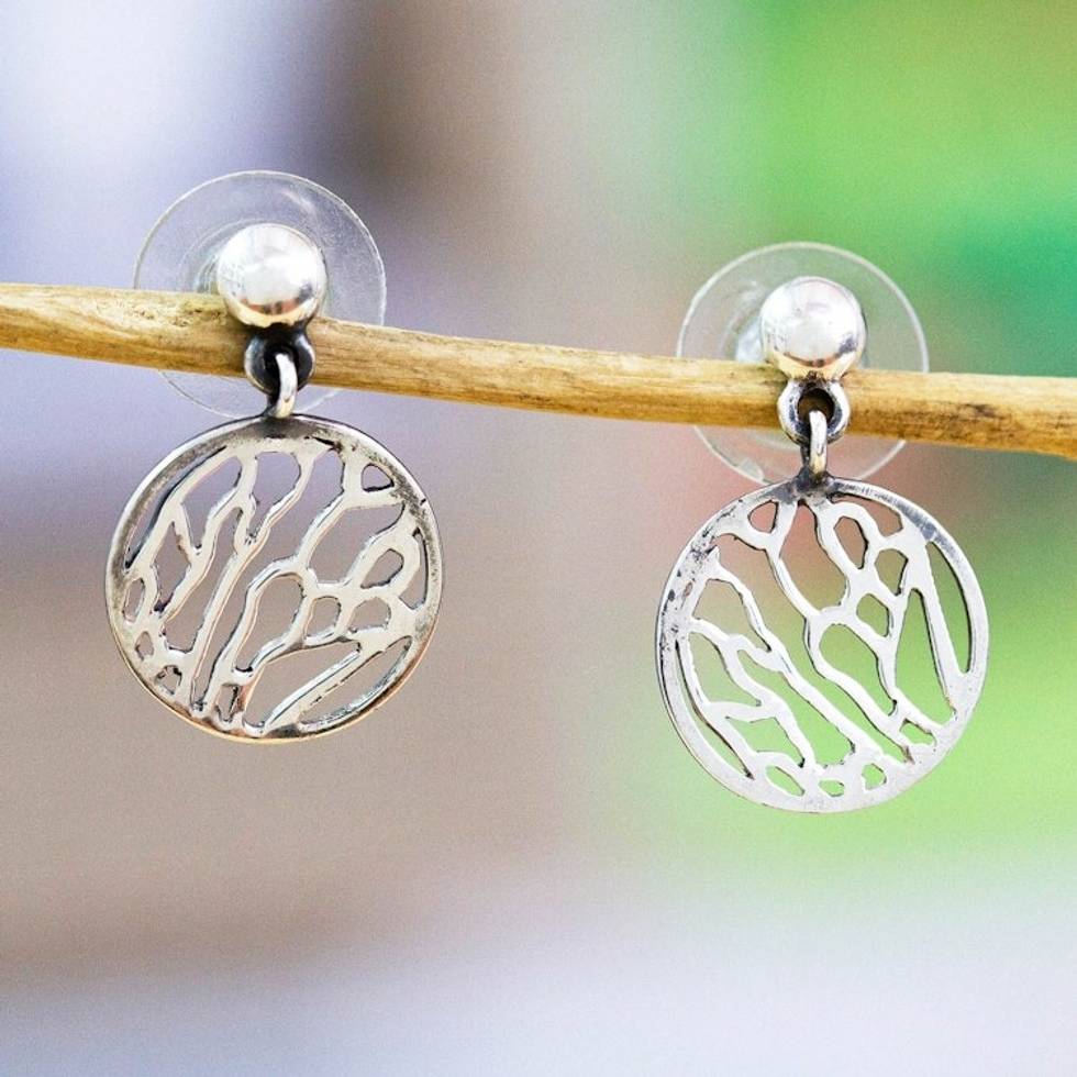 Wing-Patterned Round Sterling Silver Dangle Earrings 'Fluttering Soul' Item ID: 2671807702
