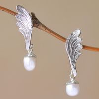 Wing-Shaped Cultured Pearl Dangle Earrings from Bali 'Heavenly Plumes' Item ID: 2671744960