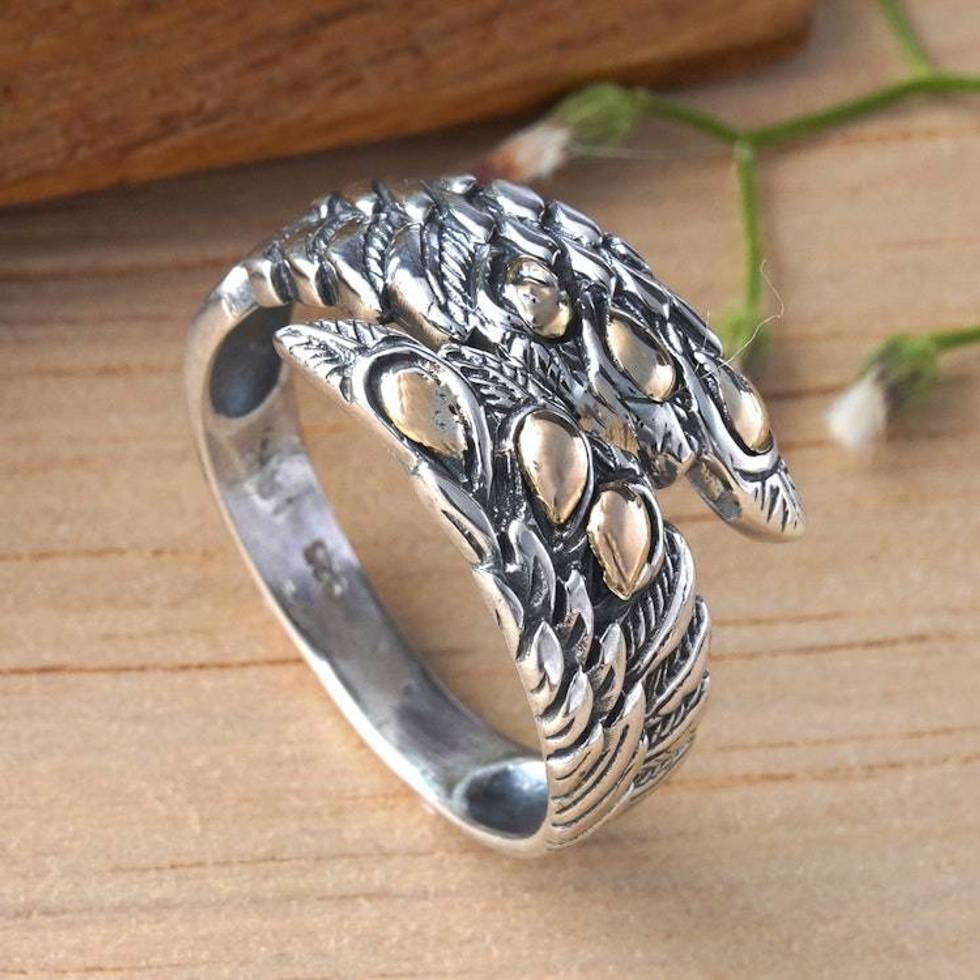 Wing-Themed Gold-Accented Sterling Silver Cocktail Ring 'Flying Gracefully' Item ID: 2676667490