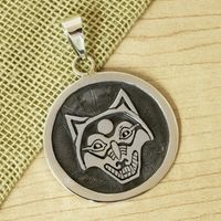 Wolf Motif Sterling Silver Pendant 'Moon Wolf' Item ID: 2671808015