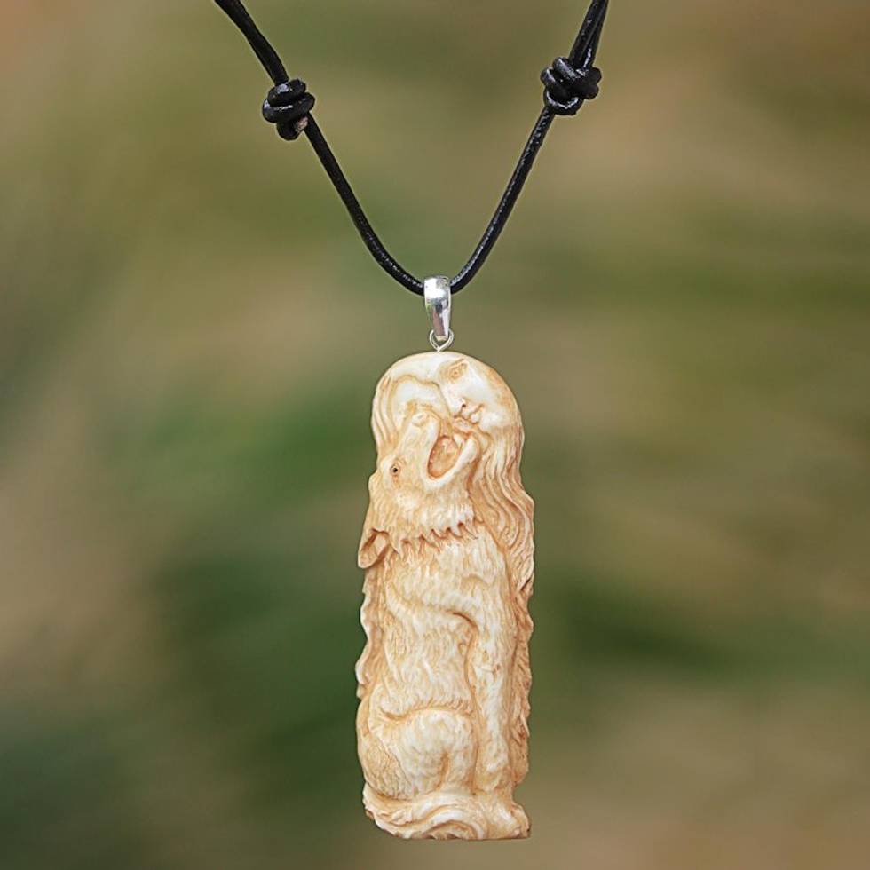 Wolf-Themed Bone Pendant Necklace from Bali 'Wolf Howl' Item ID: 2671736657