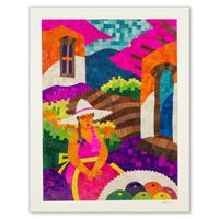 Woman's Portrait Signed Natural Fiber Collage Composition 'Selling Tropical Fruit' Item ID: 2671777784