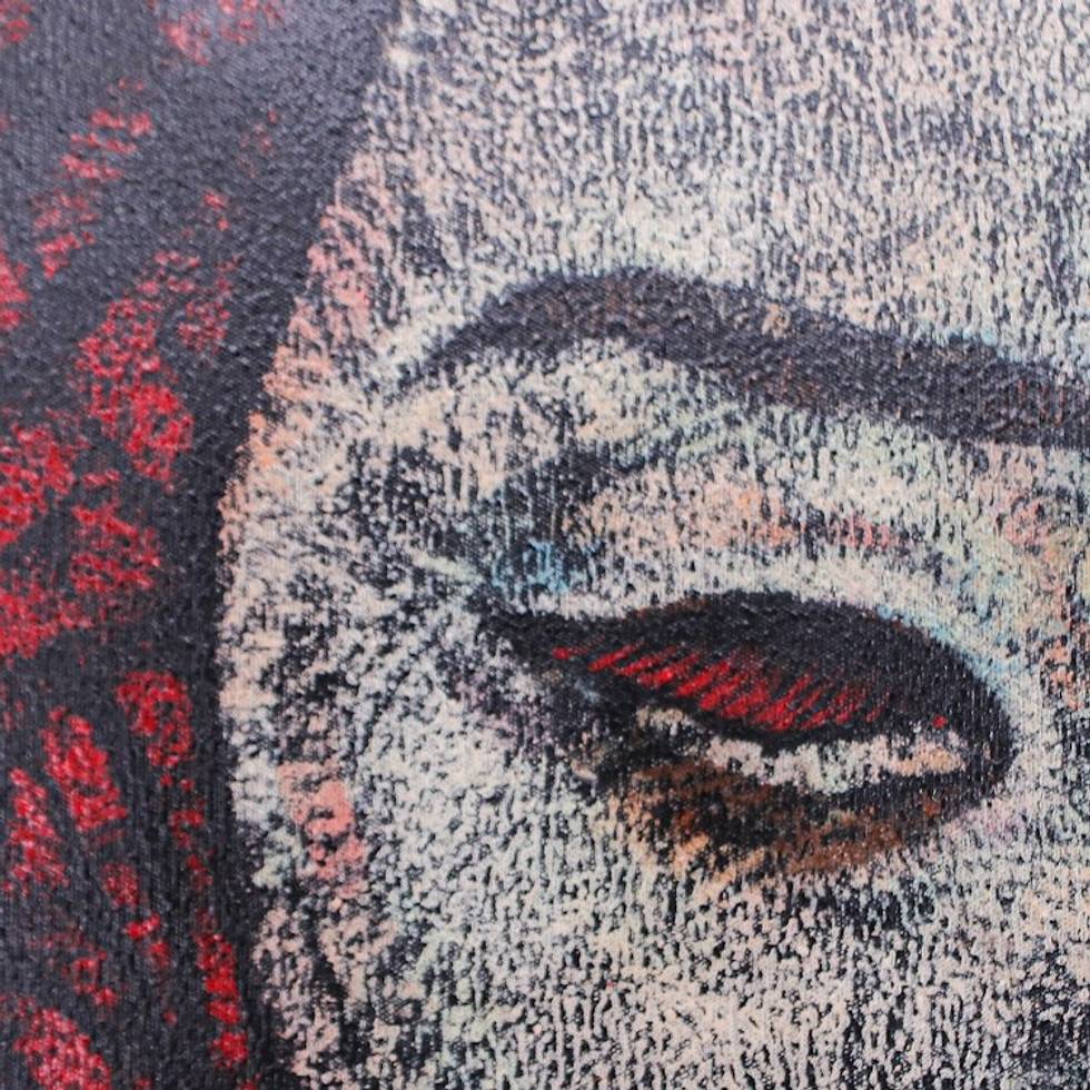Woman with Red Floral Background Stretched Acrylic Painting 'Embrace of Loneliness I' Item ID: 2669889470