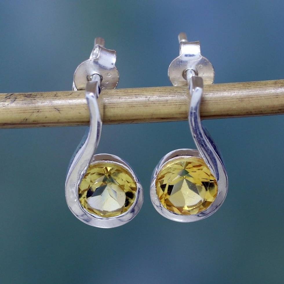 Women's Citrine Earrings Sterling Silver Jewelry from India 'Golden Droplet' Item ID: 2671618580