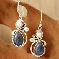 Women's Lapis Lazuli Pearl and Sterling Silver Earrings 'Blue Midnight' Item ID: 2671794974