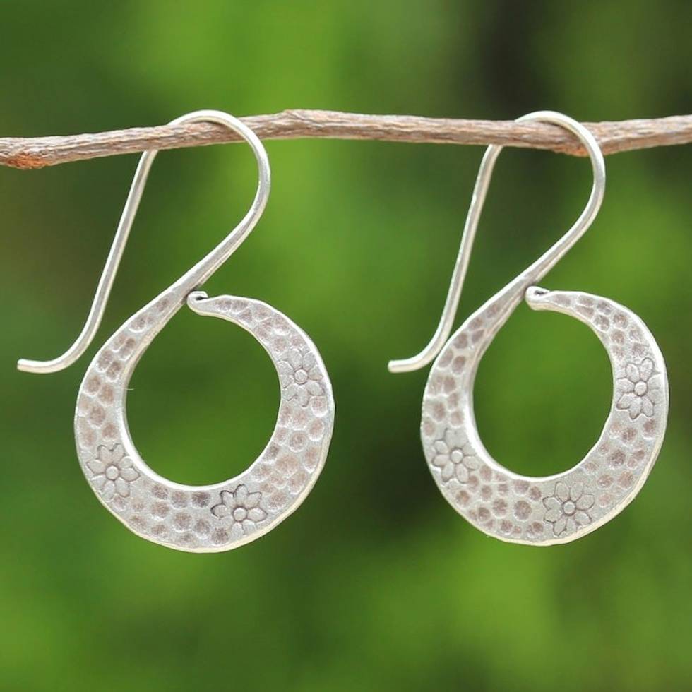 Women's Silver Floral Drop Earrings from Thailand 'Floral Swan' Item ID: 2671802066