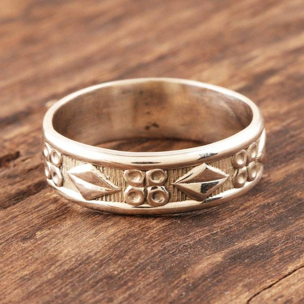 Women's Sterling Silver Band Ring with Diamond Motifs 'Shimla Shapes' Item ID: 2676666138