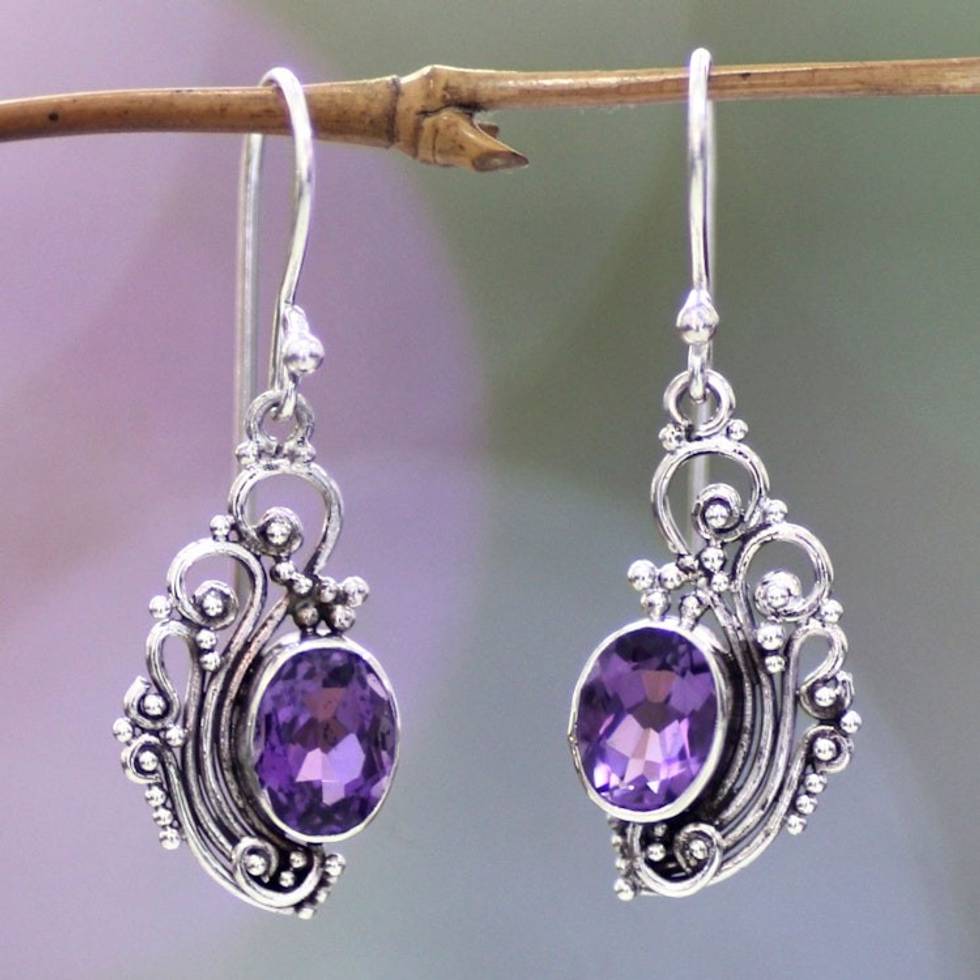 Women's Sterling Silver Dangle Amethyst Earrings 'Balinese Breezes' Item ID: 2671821421
