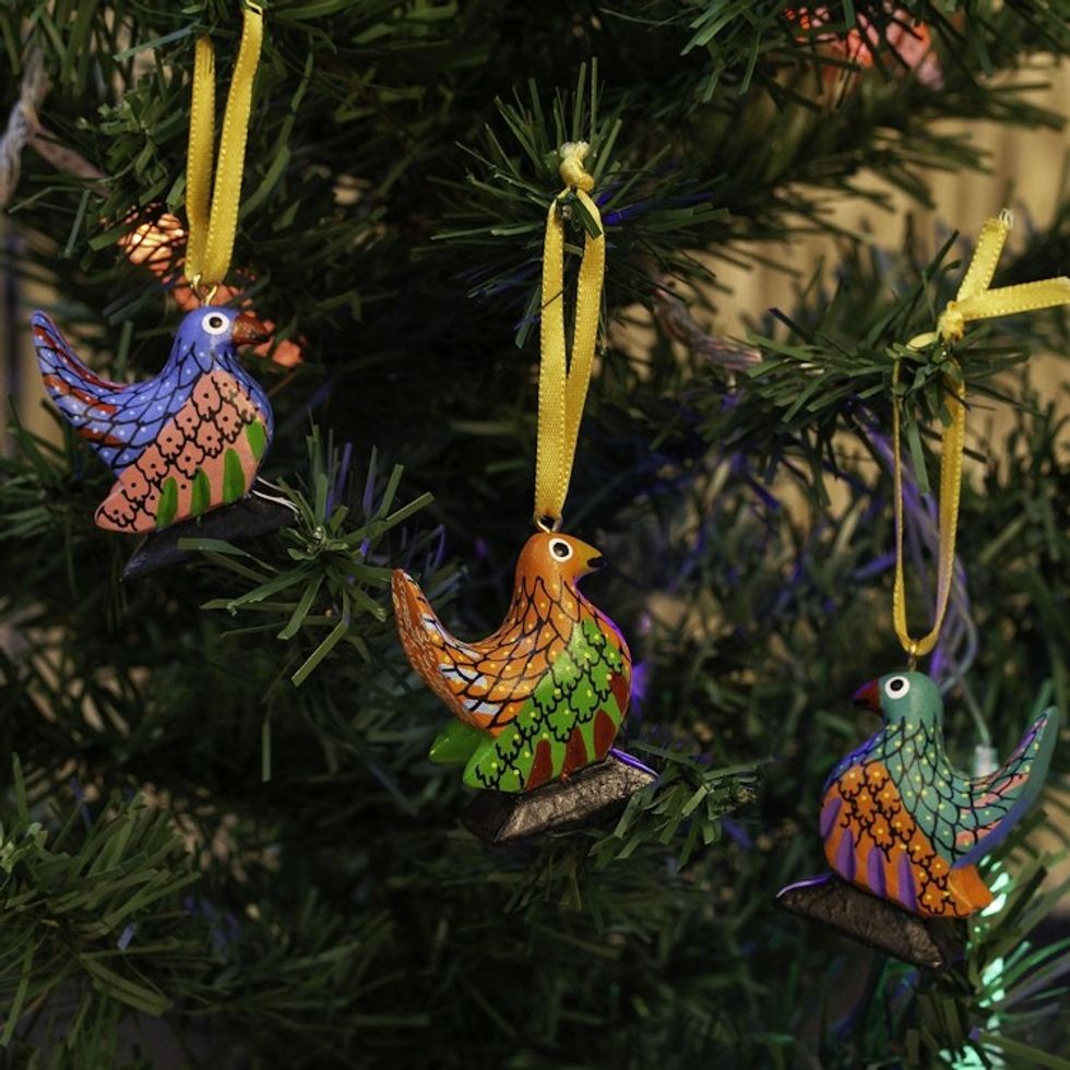 Wood Alebrije Chicken Ornaments Set of 5 from Mexico 'Sweet Chickens' Item ID: 2669939359