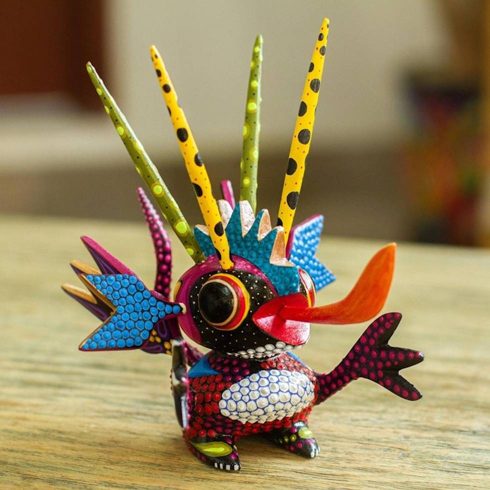 "We are best friends as well as husband and wife. Together, we carve Oaxaca's traditional alebrijes, fanciful and fantastical creatures and images crafted from found wood and painted by hand in bright colors. We project creativity, innovation and quality through our work. We believe it's important to be kind, honest and responsible when working, and we seek to improve our efforts day by day.