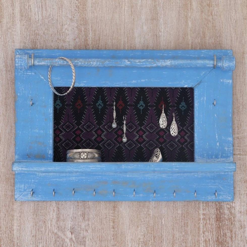 Wood and Cotton Jewelry Display in Sky Blue from Indonesia 'Tegalalang Heritage in Sky' Item ID: 2671702490