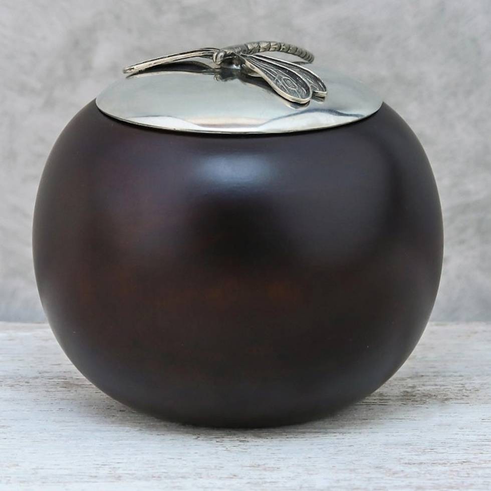 Wood and Pewter Dragonfly Decorative Jar 4 in. 'The Dragonfly' Item ID: 2671798339