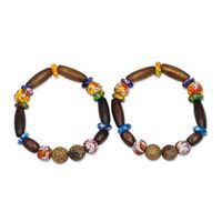 Wood and Recycled Glass Stretch Bracelets Pair 'Eco Reverence' Item ID: 2671805964