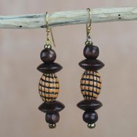 Wood and Recycled Plastic Beaded Dangle Earrings from Ghana 'Eco Joy' Item ID: 2671805617