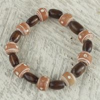 Wood and Recycled Plastic Beaded Stretch Bracelet from Ghana 'Successful Obaa Mo' Item ID: 2671803876