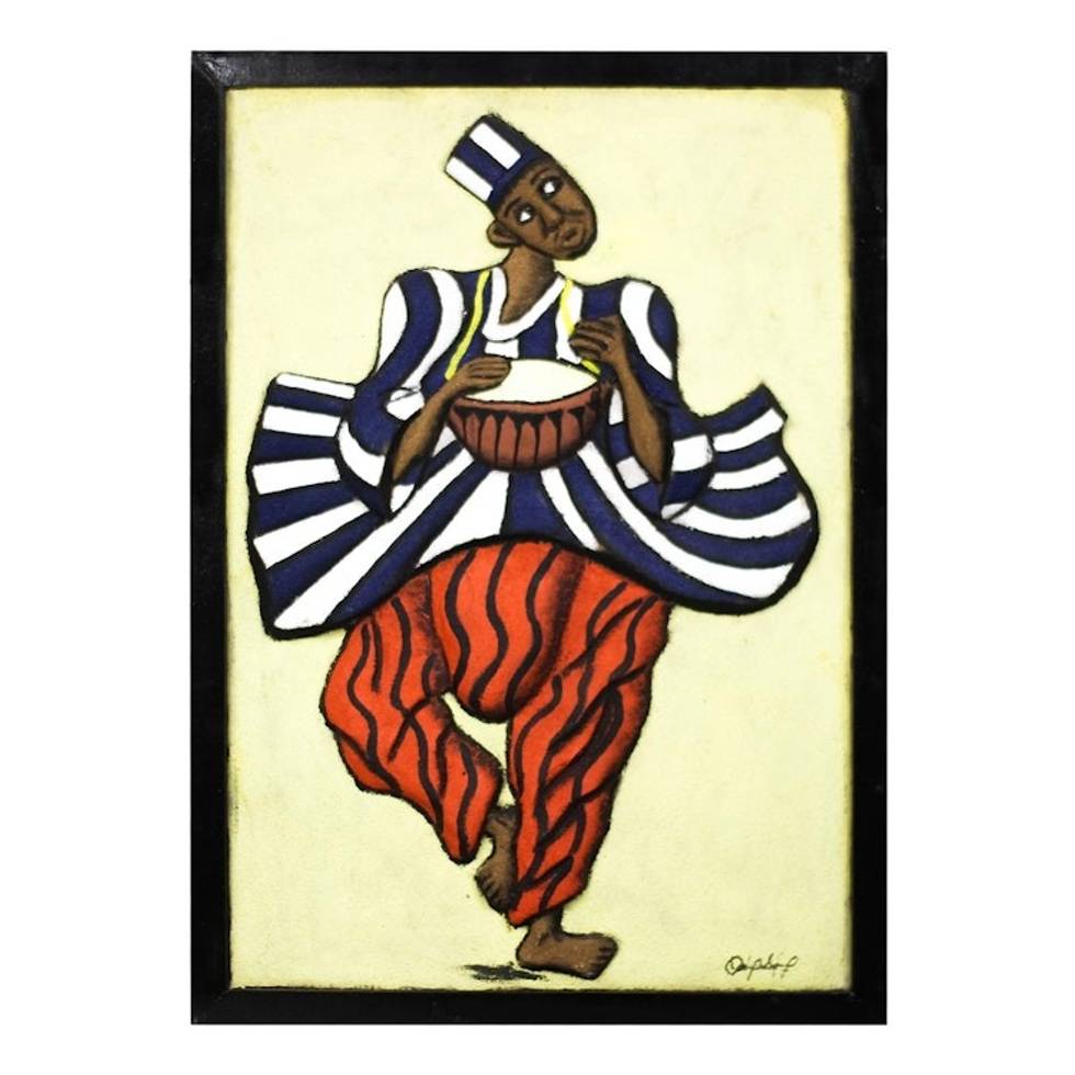Wood and Sand Wall Art of a Drummer from Ghana 'Kontokoli' Item ID: 2671806325