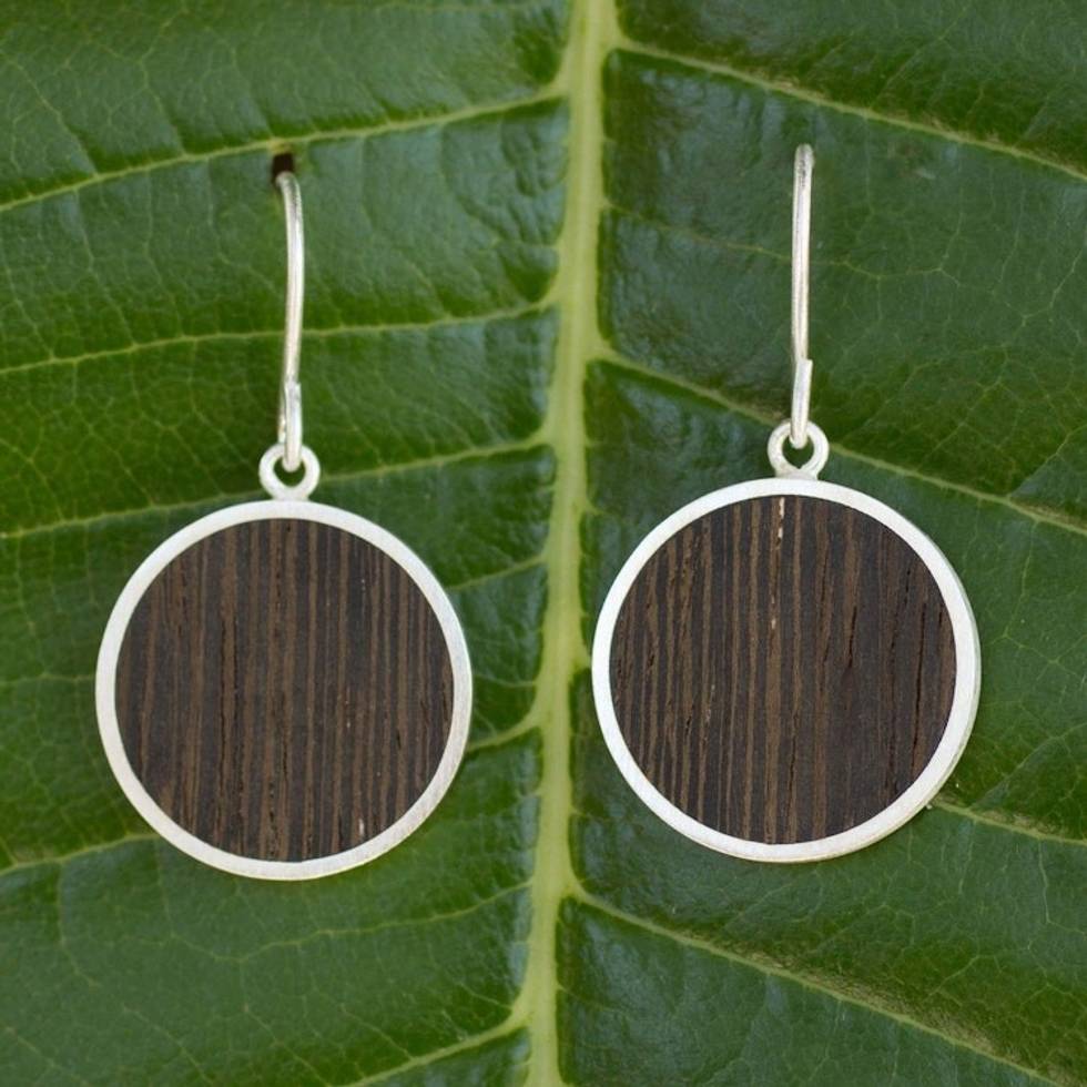 Wood and sterling silver dangle earrings 'Forest Moon' Item ID: 2671803119