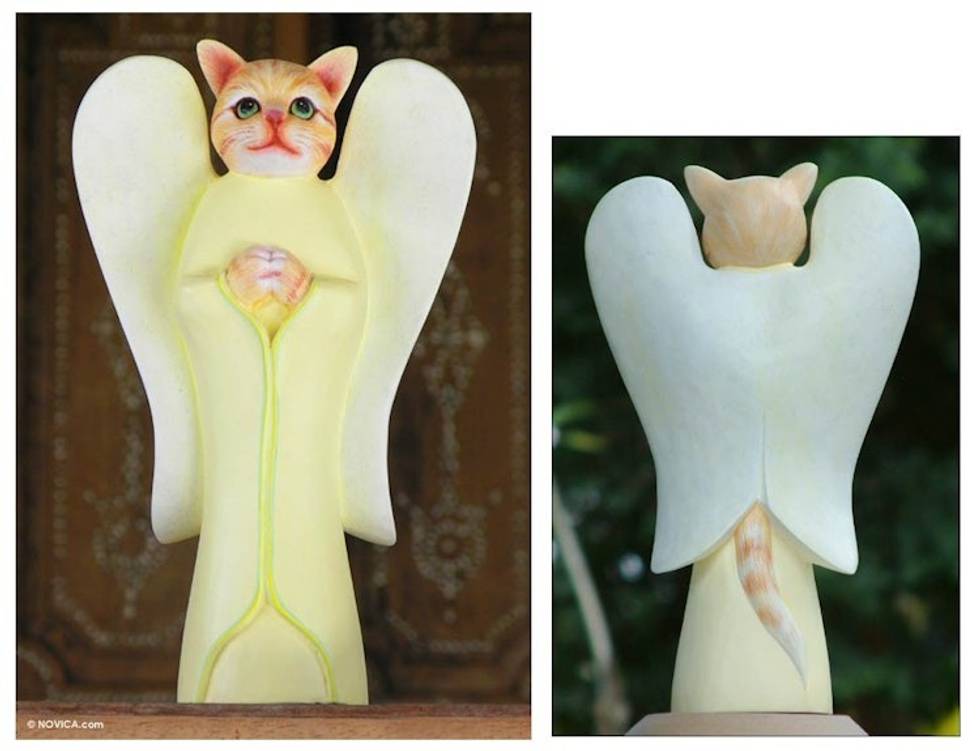 Wood Animal Sculpture 'Tabby Cat Angel' Item ID: 2671699968