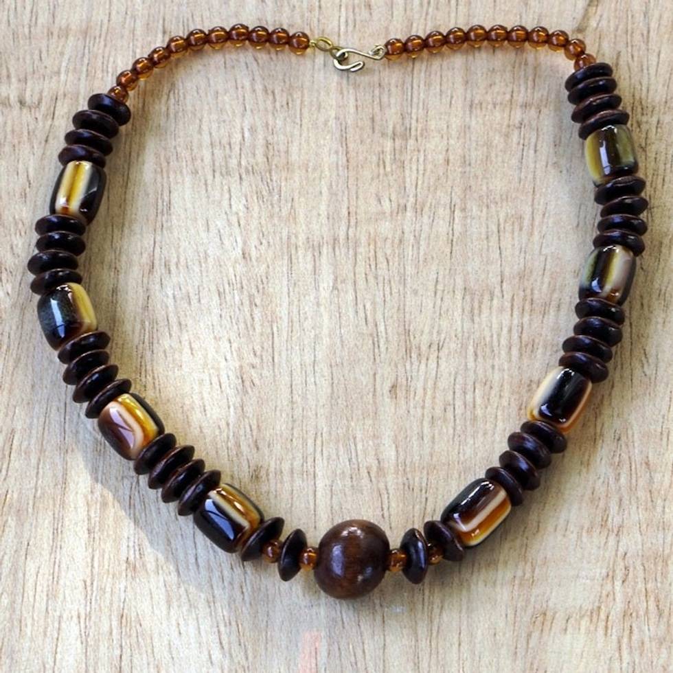 Wood Beaded Dangle Necklace Artisan Crafted Jewelry 'Edinam' Item ID: 2671801046