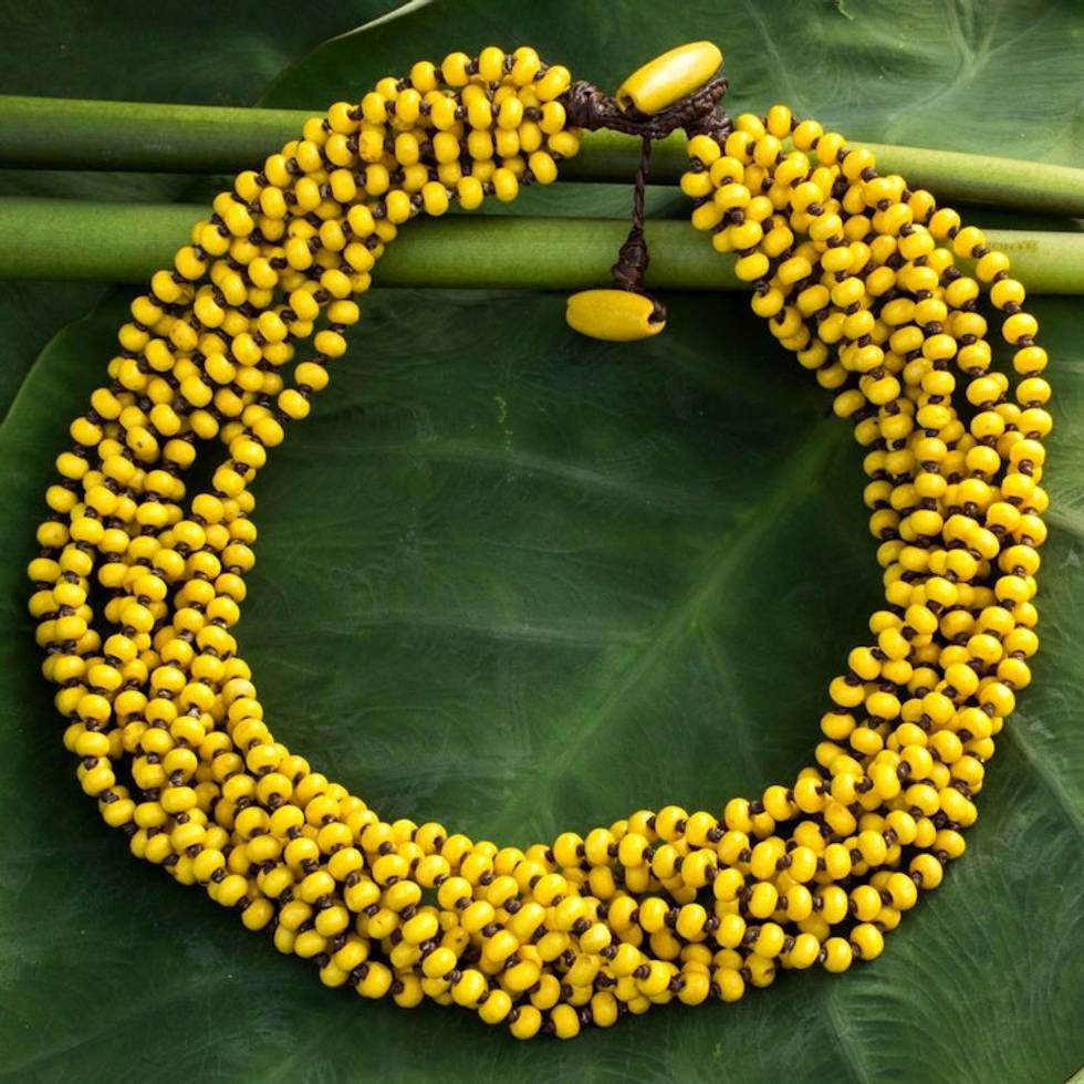 Wood Beaded Jewelry Yellow Torsade Necklace 'Phrae Belle' Item ID: 2671802904