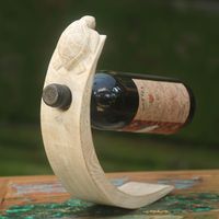 Wood Bottle Holder with White Finish and Turtle Motif 'White Turtle' Item ID: 2669892028