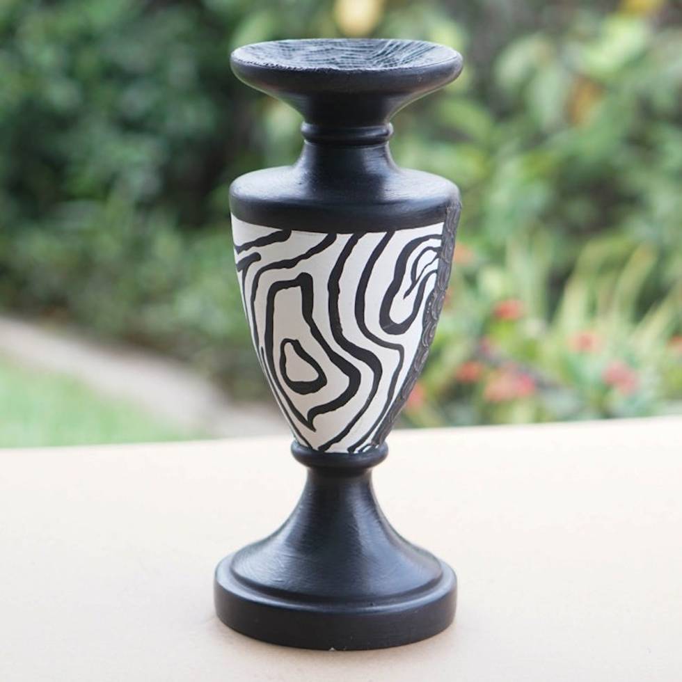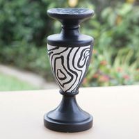Wood Candle Holder with Embossed Aluminum Accents from Ghana 'African Wilderness' Item ID: 2671805285